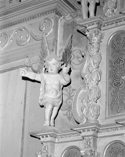 Détail ange à gauche.Immatriculation