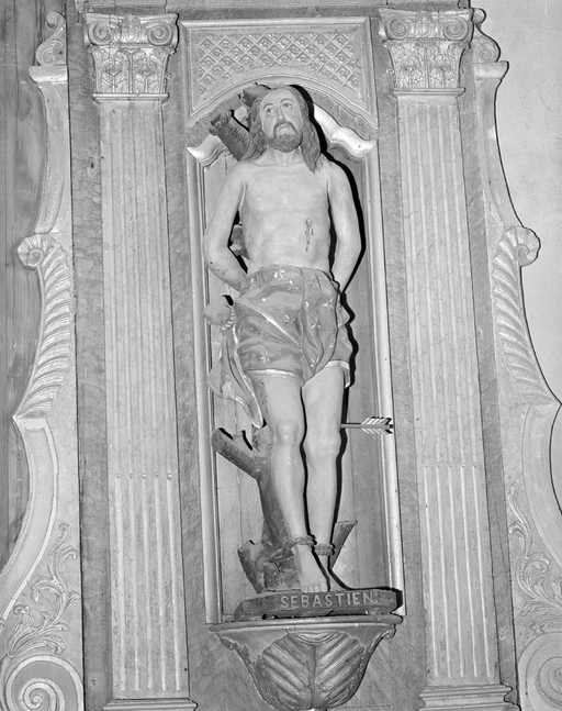 Statue (d'applique) : saint Sébastien, église paroissiale Saint-Vinoc (Plouhinec-29),