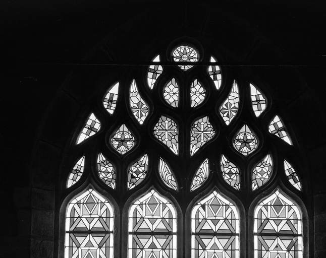 Verrière (3, verrière décorative, verrière en losanges, baies 3, 4 et 6), église paroissiale Saint-Vinoc (Plouhinec-29),