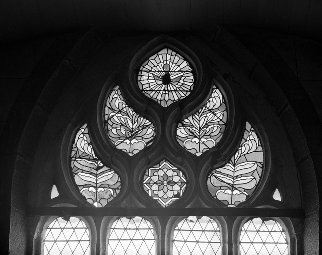 Verrière (3, verrière décorative, verrière en losanges, baies 3, 4 et 6), église paroissiale Saint-Vinoc (Plouhinec-29),