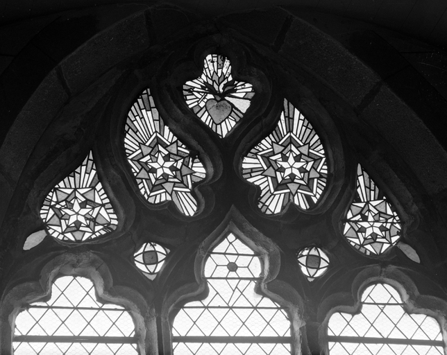 Verrière (3, verrière décorative, verrière en losanges, baies 3, 4 et 6), église paroissiale Saint-Vinoc (Plouhinec-29),