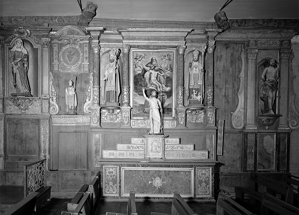 Autel, retable, gradins d'autel (3), tabernacle (autel secondaire, retable architecturé, retable à panneau compartimenté), église paroissiale Saint-Vinoc (Plouhinec-29),