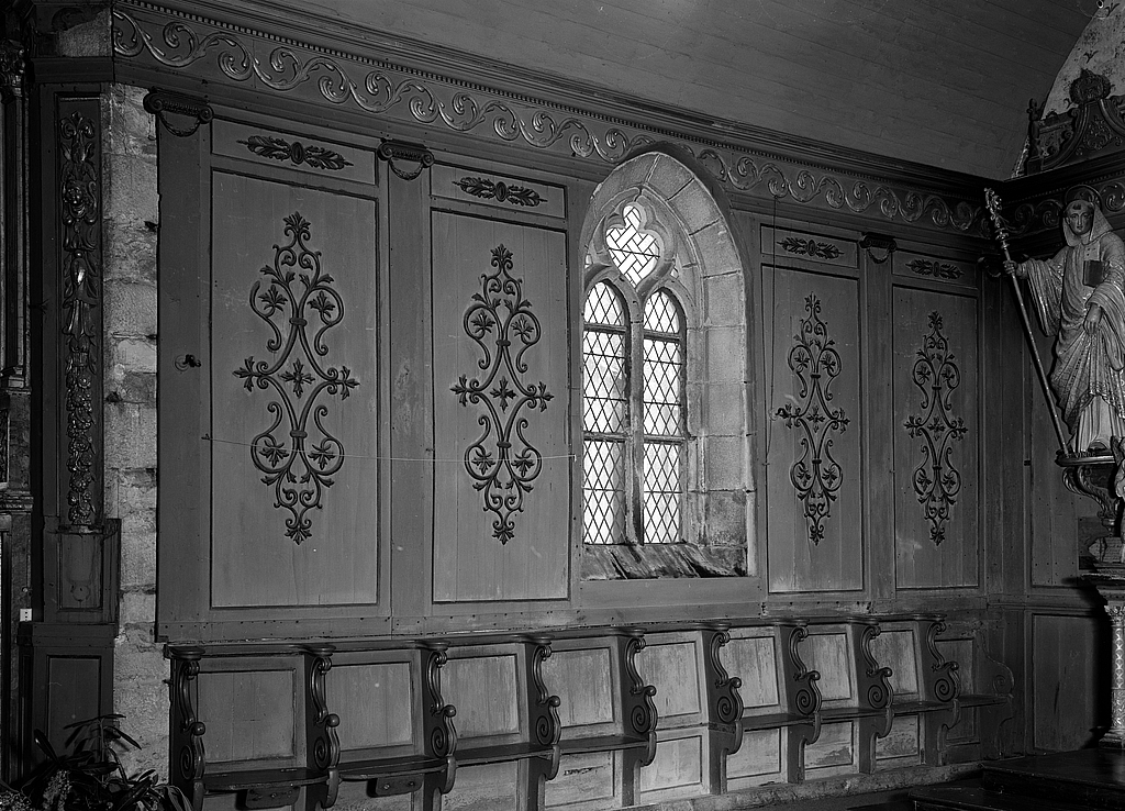 Retable, stalles (retable à panneau plat), église paroissiale Saint-Vinoc (Plouhinec-29),