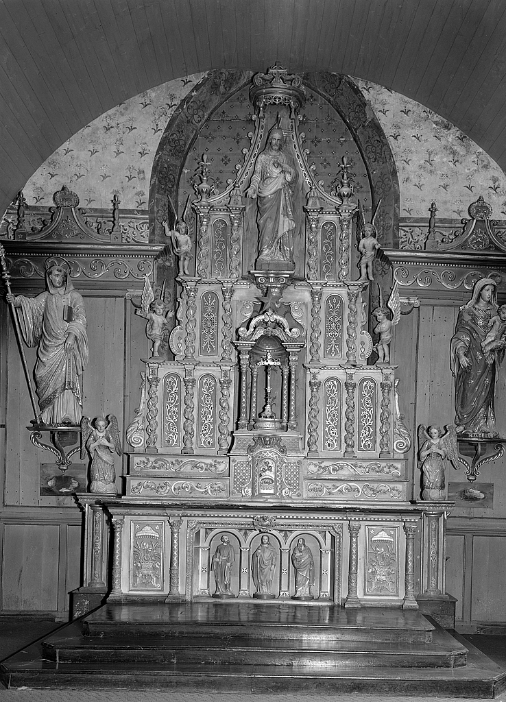 Autel, tabernacle, exposition, gradins d'autel (2) (maître-autel, autel tombeau, tabernacle architecturé), dit du Sacré-Coeur, (anciennement autel retable numéro 1), église paroissiale Saint-Vinoc (Plouhinec-29),
