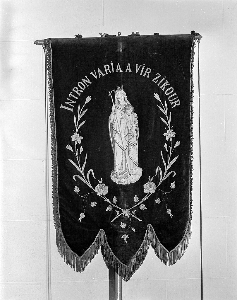 Bannière de la Vierge, vue générale de face.Immatriculation