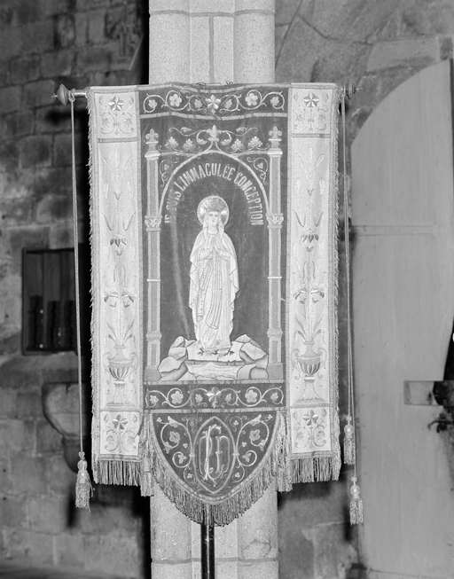 Bannières (4) : Apparition de la Vierge, Vierge à l'Enfant, saint Michel, Immaculée Conception, église paroissiale Notre-Dame-de-Roscudon (Pont-Croix),