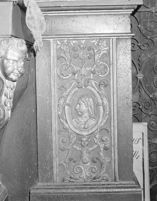 Autel, tabernacle, gradins d'autel (2) (maître-autel, autel tombeau), dit de Notre-Dame de Roscudon, église paroissiale Notre-Dame-de-Roscudon (Pont-Croix),