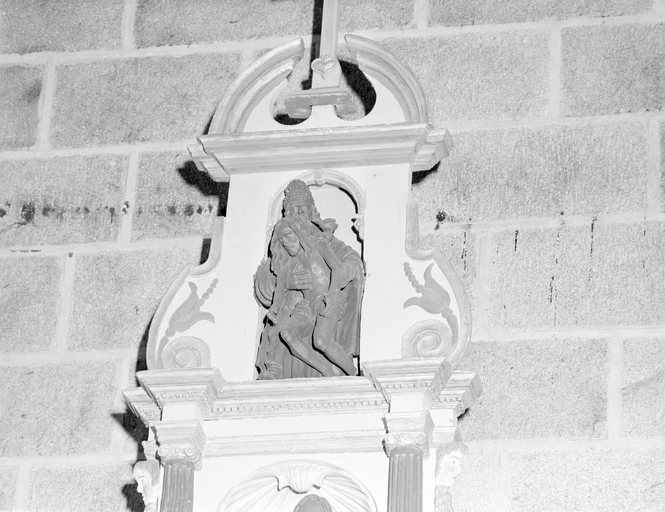 Autel, retable, ronde-bosse, statue, groupe sculpté (autel secondaire, autel tombeau, retable architecturé à niche), de saint pierre, (anciennement retable numéro 2), église paroissiale Notre-Dame-de-Roscudon (Pont-Croix),