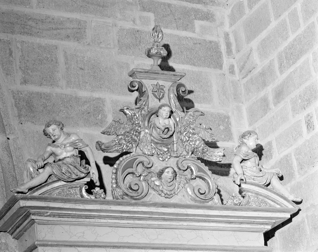 Autel, retable, gradins d'autel (2) (autel secondaire, autel table, retable architecturé à niche), de saint Joseph, (anciennement retable numéro 3), église paroissiale Notre-Dame-de-Roscudon (Pont-Croix),