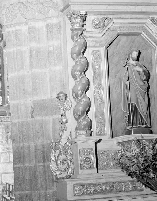 Autel, retable, gradins d'autel (2) (autel secondaire, autel table, retable architecturé à niche), de saint Joseph, (anciennement retable numéro 3), église paroissiale Notre-Dame-de-Roscudon (Pont-Croix),