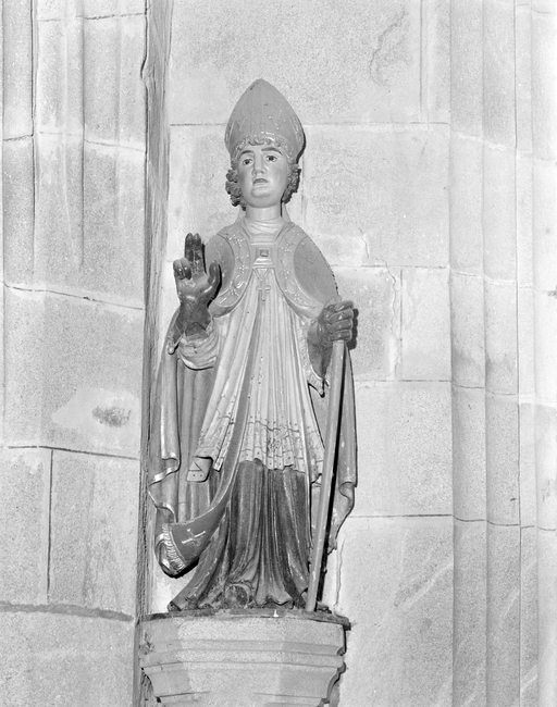 Statue (petite nature) : saint évêque (2), église paroissiale Saint-Budoc ou Notre-Dame de la Clarté (Beuzec-Cap-Sizun),