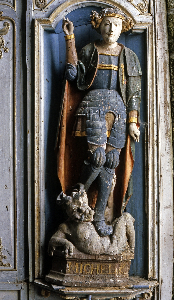 Statue (petite nature, d'applique) : saint Michel, église Saint-Mélar (Meilars),