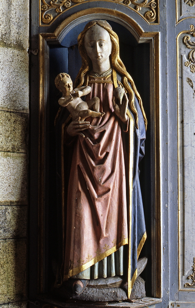 Statue (petite nature, d'applique) : Vierge à l'Enfant (2), dite à la poire, église Saint-Mélar (Meilars),