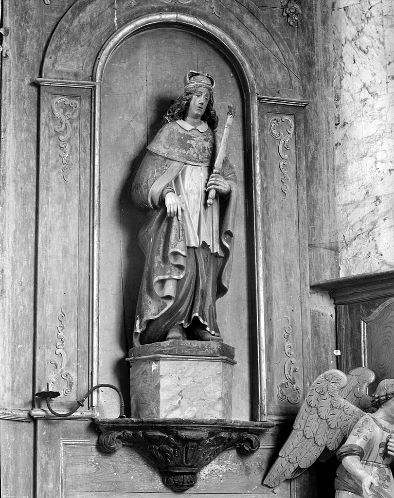 Statue (d'applique, petite nature) : saint Louis, dite saint Meylars, église Saint-Mélar (Meilars),