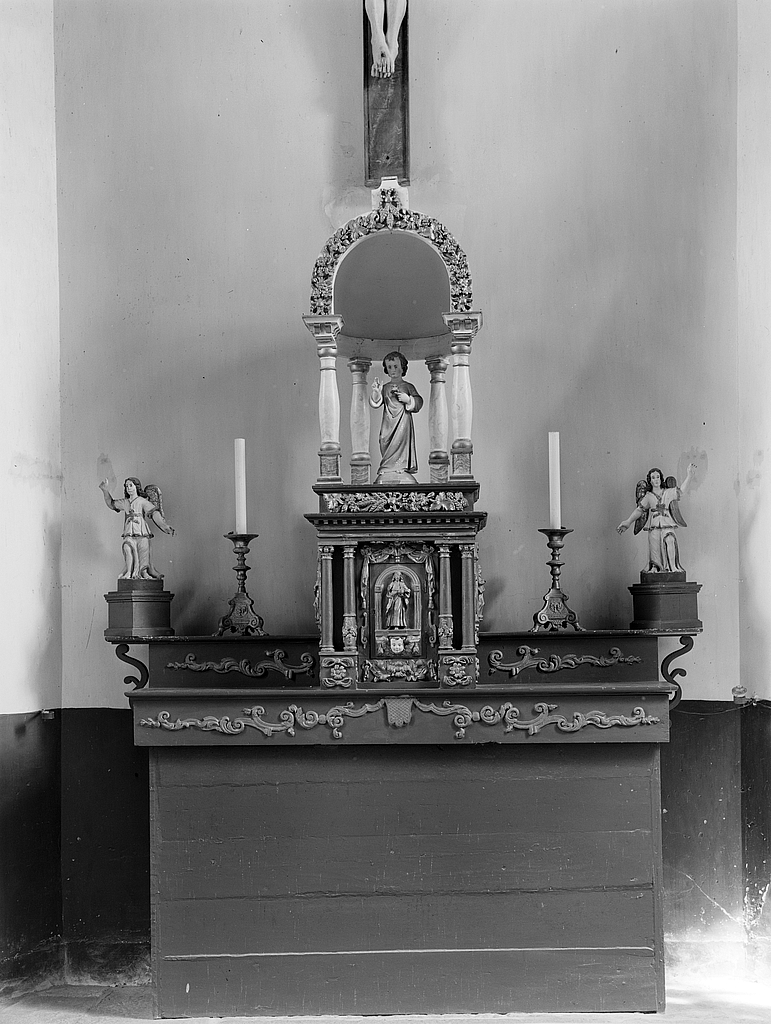 Tabernacle, exposition, gradins d'autel (2), statues (3) (anciennement autel-retable numéro 1), église paroissiale Saint-Magloire (Mahalon),