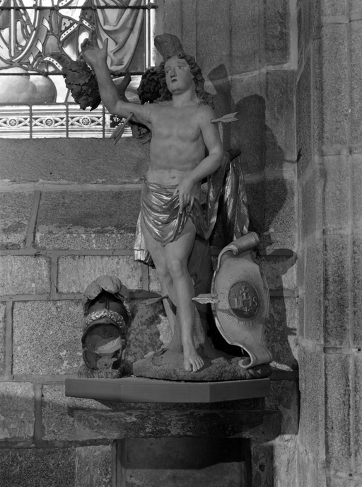 Statue, groupe sculpté (en pendant) : saint Sébastien, l'ange Gardien, église paroissiale Notre-Dame-de-Roscudon (Pont-Croix),