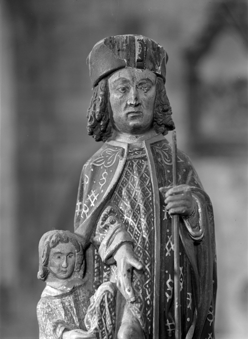 Statuette de saint Roch, détail du visage.Immatriculation