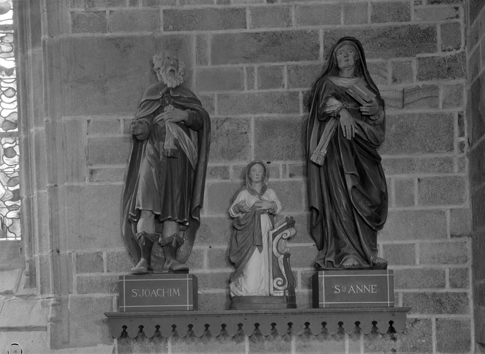 Groupe sculpté (d'applique) : sainte Anne, saint Joachim, Vierge, église paroissiale Notre-Dame-de-Roscudon (Pont-Croix),