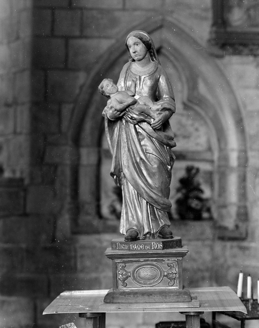 Statues (2, statuette) : Vierge à l'Enfant, sainte femme, dite Notre-Dame de Roscudon, sainte Espérance, église paroissiale Notre-Dame-de-Roscudon (Pont-Croix),