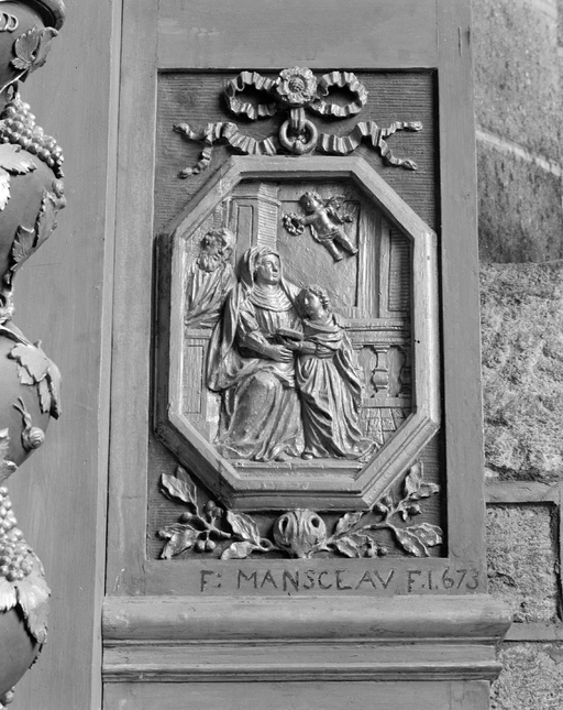 Autel, retable (autel secondaire, autel tombeau, retable architecturé à niche), de sainte Anne, (anciennement retable numéro 1), église paroissiale Notre-Dame-de-Roscudon (Pont-Croix),