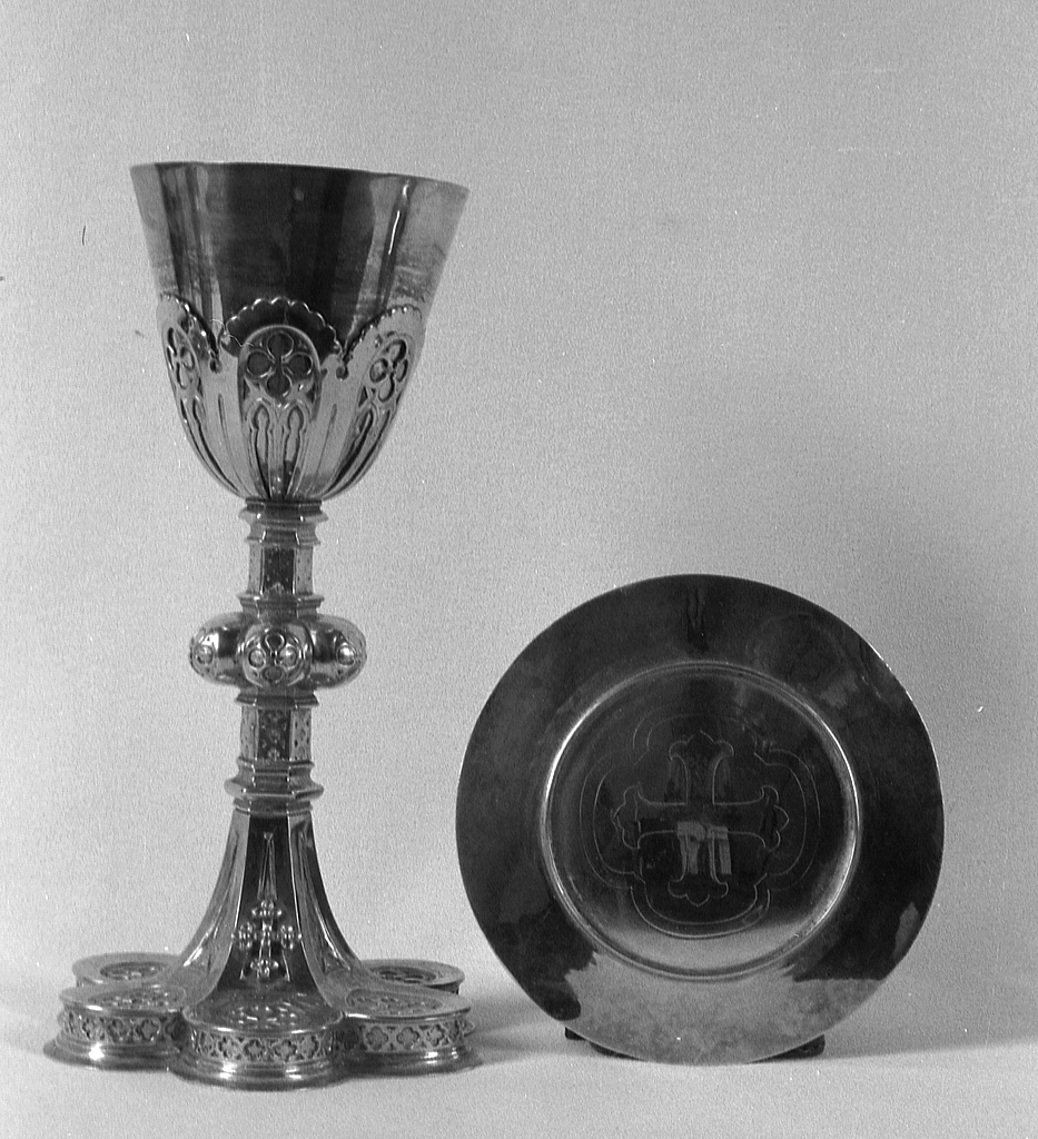 Calice, patène (2), style néo-gothique, église paroissiale Saint-Magloire (Mahalon),