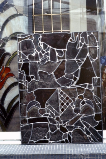 Verrière 1 après restauration, vue prise en atelier Briand à Rennes : panneau 2b, revers, vue d'ensemble.Immatriculation