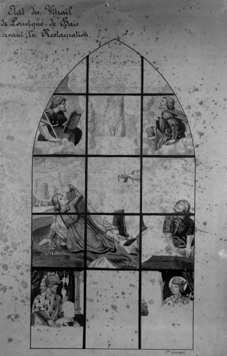 Verrière 4, Transfiguration, reproduction de dessin de Leconte et Colin, 1880, vue générale.Immatriculation
