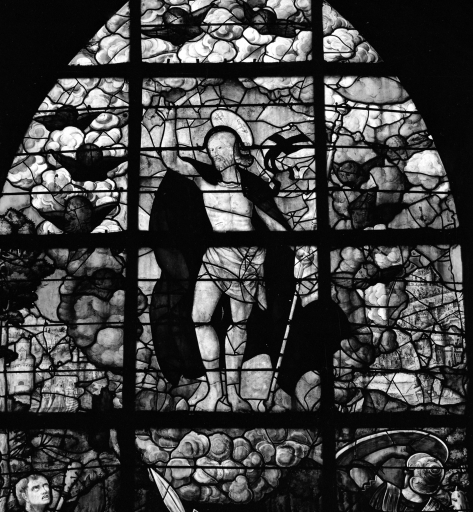 Verrière 6 : Résurrection, détail du registre supérieur.Immatriculation