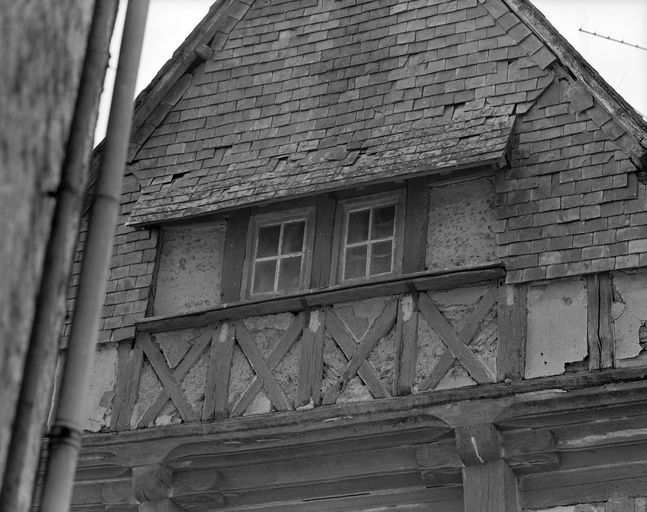 Elévation est, vue de détail du 3è niveau.Immatriculation