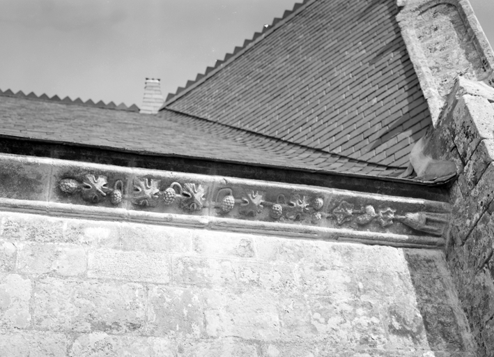Elévation sud, partie est, corniche sculptée : partie droite.Immatriculation