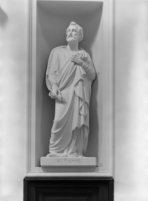 Ensemble de 5 statues : Saint Pierre, Saint Paul, Vierge à l'Enfant, dite Notre-Dame des Victoires, Saint Nicolas, Saint Joseph, église Saint-Nicolas (La Gacilly),