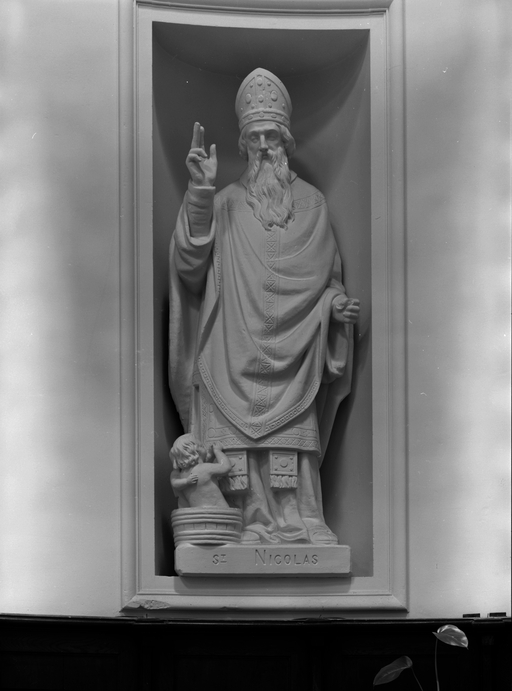 Ensemble de 5 statues : Saint Pierre, Saint Paul, Vierge à l'Enfant, dite Notre-Dame des Victoires, Saint Nicolas, Saint Joseph, église Saint-Nicolas (La Gacilly),