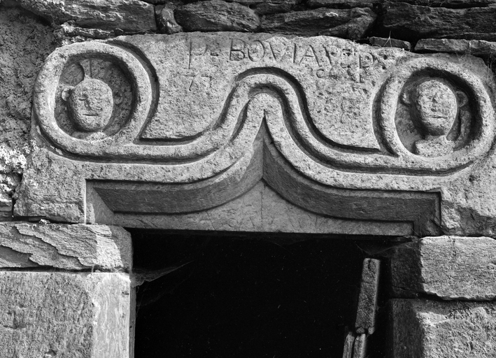 Maison, élévation sud : le linteau orné de la fenêtre (état en 1983)Immatriculation