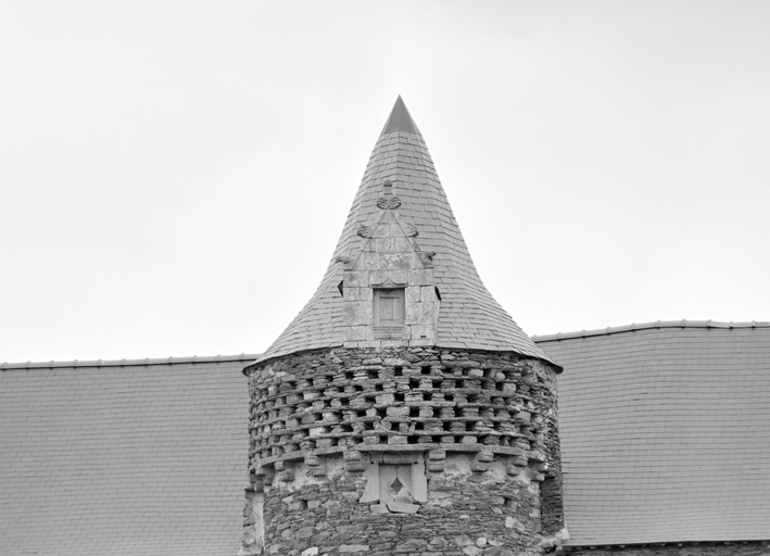 Manoir, élévation nord : le pigeonnier dans la partie supérieure de la tour d'escalier (état en 1983)Immatriculation