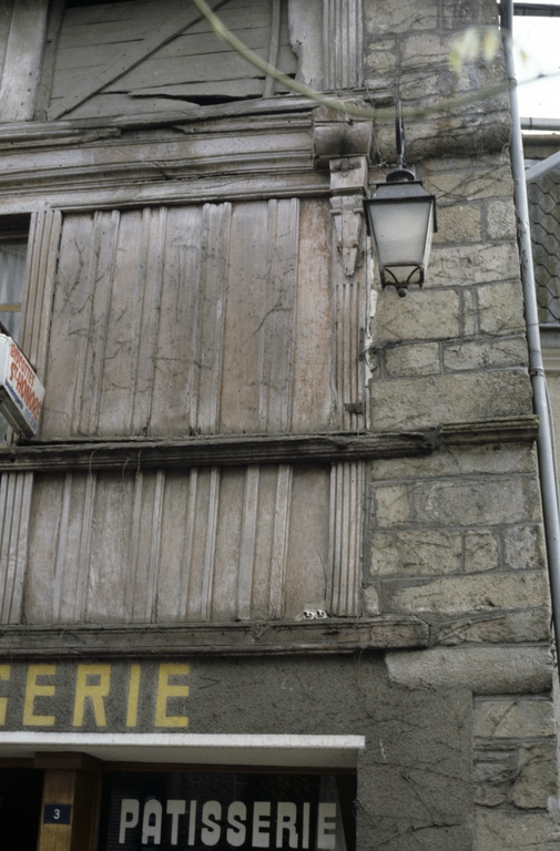 Maison, élévation sur rue, partie supérieure : pan de bois et mur pignon, à droite (état en 1983)Immatriculation