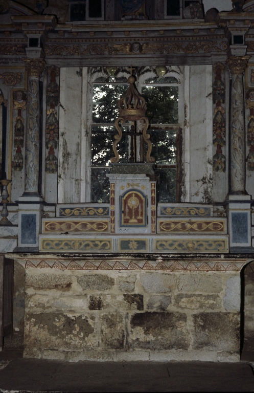 Autel, retable, tabernacle, gradins d'autel (3), (maître-autel, autel tombeau, retable architecturé), chapelle Saint-Patern (Malguénac),