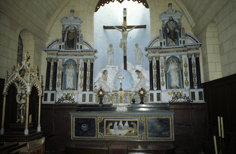 Autel, retable, tabernacle (maître-autel, autel tombeau, retable architecturé, tabernacle à ailes), église paroissiale Saint-Pierre Saint-Paul (Kergrist),