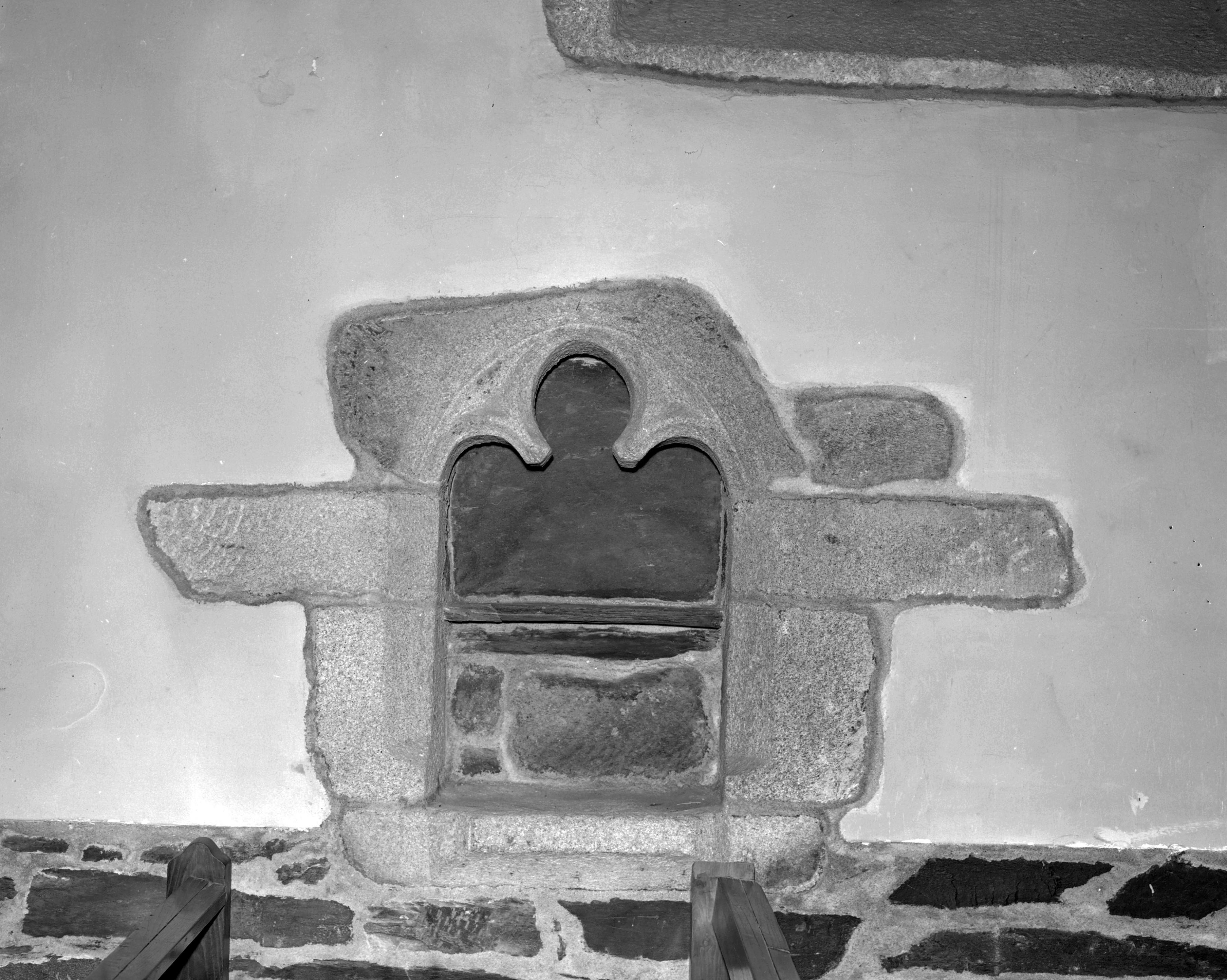 Église, nef, mur sud : lavabo-crédence trilobée (état en 1983)Immatriculation