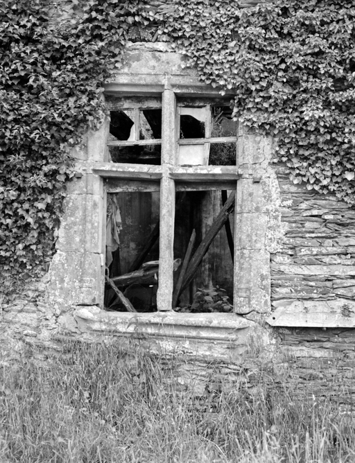 Prieuré, élévation ouest du logis : le fenêtre à meneaux (état en 1983)Immatriculation
