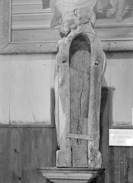 Statue de Vierge à l'Enfant, vue du revers.Immatriculation