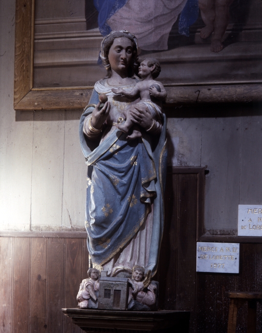 Statue (d'applique, petite nature) : Vierge à l'Enfant, dite Notre-Dame de Lorette, église paroissiale Notre-Dame-de-Lorette (Séglien),