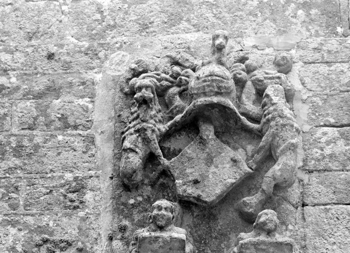 Elévation ouest, détail armoiries.Immatriculation