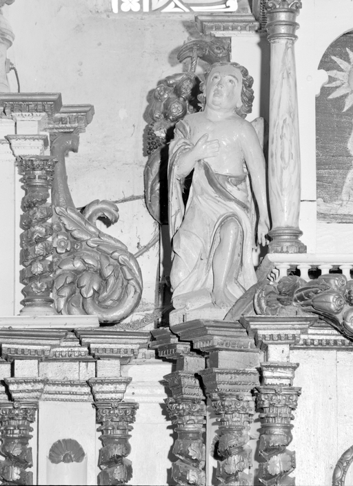 Autel, retable, tabernacle, gradins d'autel (2), (maître-autel, autel tombeau, retable architecturé, tabernacle à ailes), église paroissiale Sainte-Brigitte (Sainte-Brigitte),