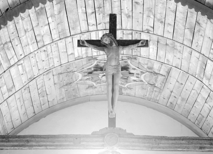 Poutre de gloire : Christ en croix, chapelle de la Trinité (Cléguérec),