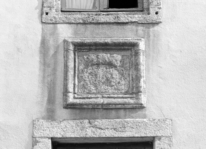 Logis, détail blason martelé.Immatriculation