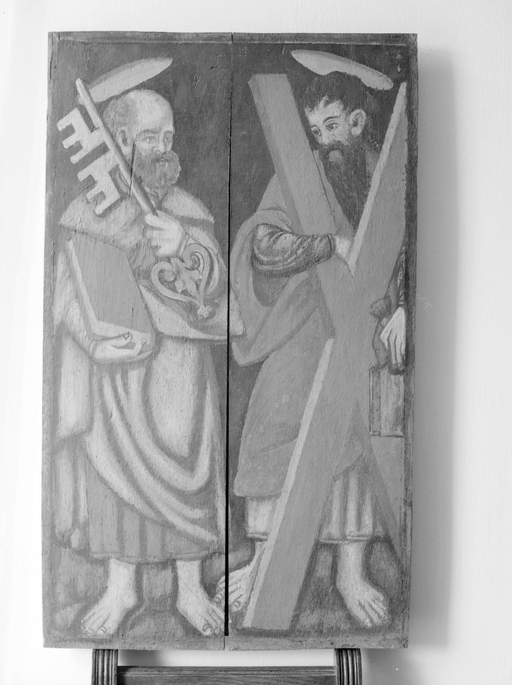 Jubé : les Descente de Croix, saint Jean-Baptiste, apôtres, chapelle de la Trinité (Cléguérec),
