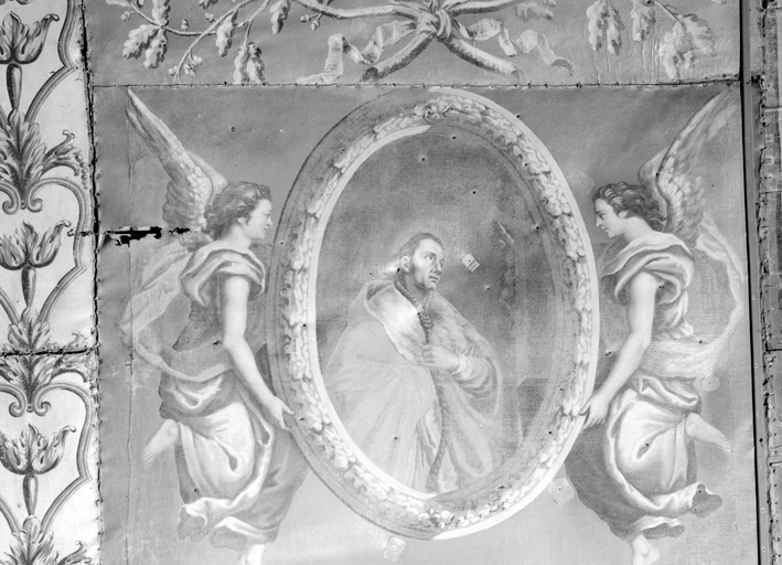 Ensemble de peintures de plafond A, choeur nord, panneau 45 : sainte Charles Borromée.Immatriculation