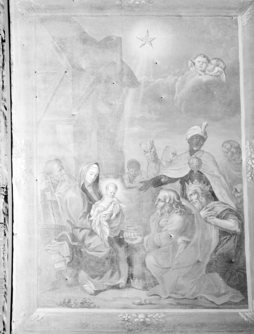 Ensemble de peintures de plafond A, choeur nord, panneau 39 : Adoration des Mages.Immatriculation