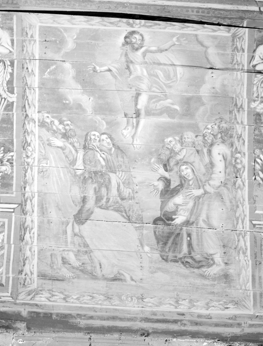 Ensemble de peintures de plafond A, nef nord, panneau 10 : Ascension du Christ.Immatriculation