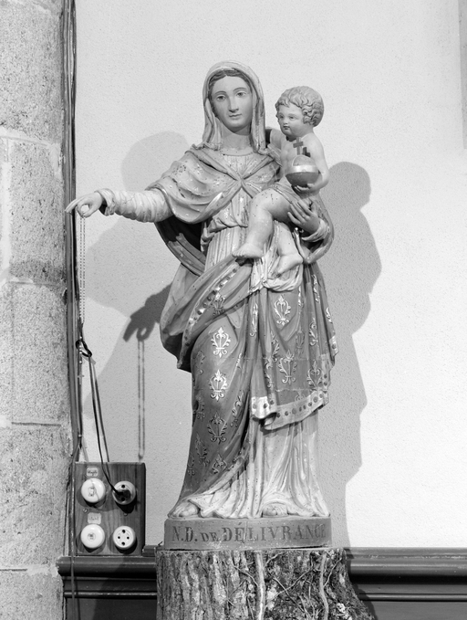 Statue (d'applique, petite nature) : Vierge à l'Enfant, église paroissiale Saint-Guérec (Cléguérec),
